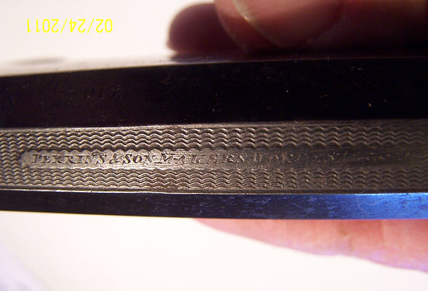 This is a single barrel 410 shotgun which has probably been converted from a rook rifle. It is now owned by Julie Snider in Canada and was formerly owned by Jim Traynor(photo)
